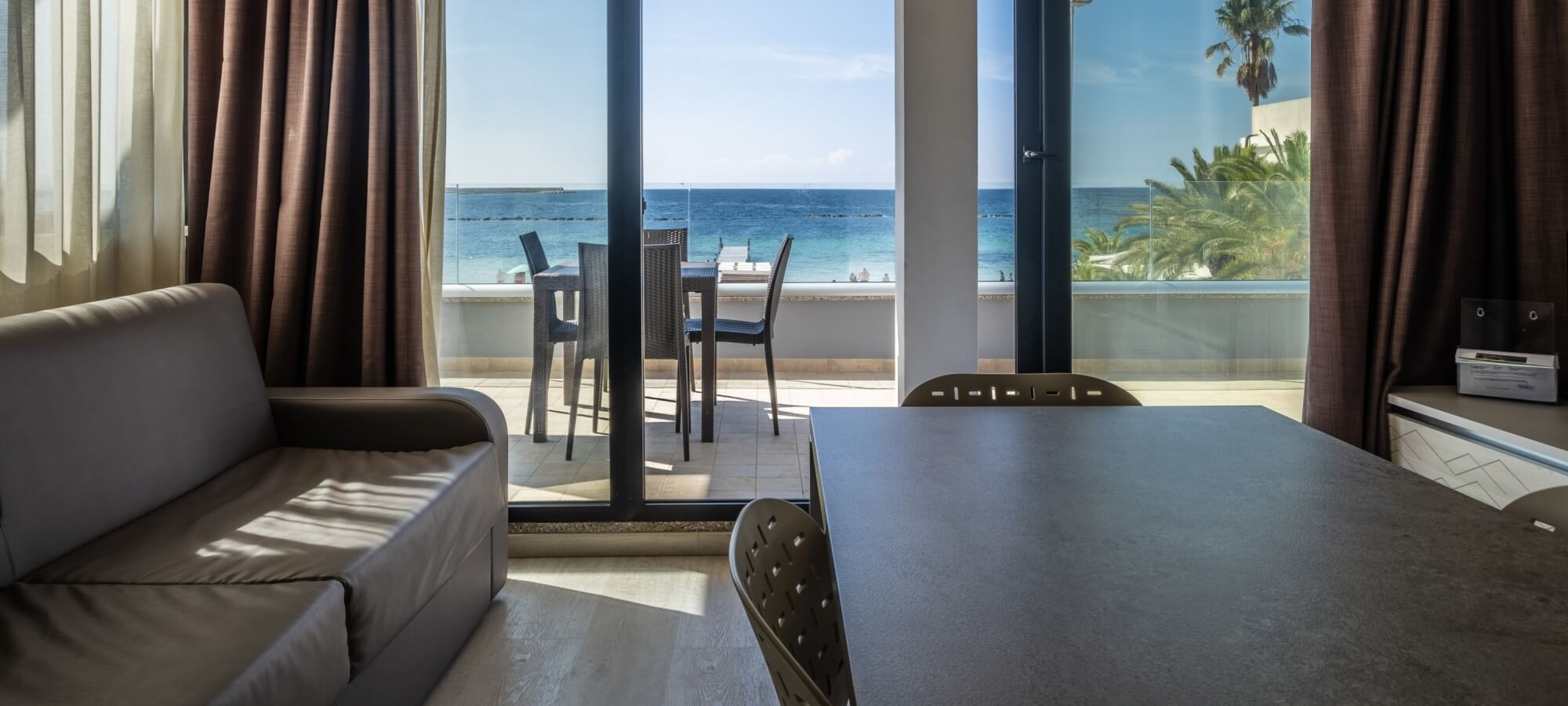Il bilocale superior con terrazza vista mare, di recente ristrutturazione, è composto da 2 ambienti di cui il soggiorno con angolo cottura attrezzato e con divano letto matrimoniale, una camera con letto matrimoniale, un bagno con doccia e una terrazza vista mare modernamente arredata.
