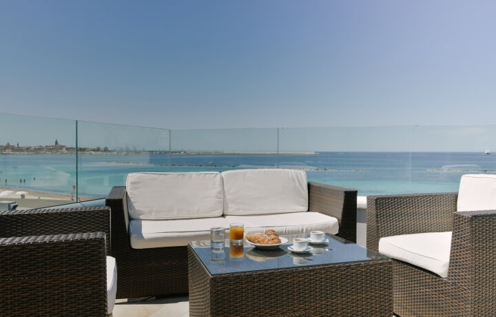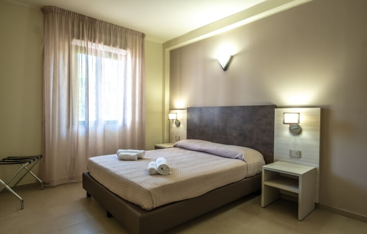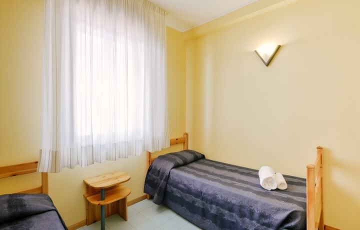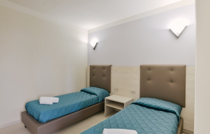Trilocali per 6 pax sono dislocati in varie zone e piani della struttura e sono composti da tre ambienti, di cui il soggiorno con angolo cottura attrezzato e con divano letto matrimoniale due posti, 1 camera da letto due posti con letto matrimoniale, 1 camera da letto 2 posti con letti singoli, un bagno con doccia e balcone con un tavolo e 2 sedie.